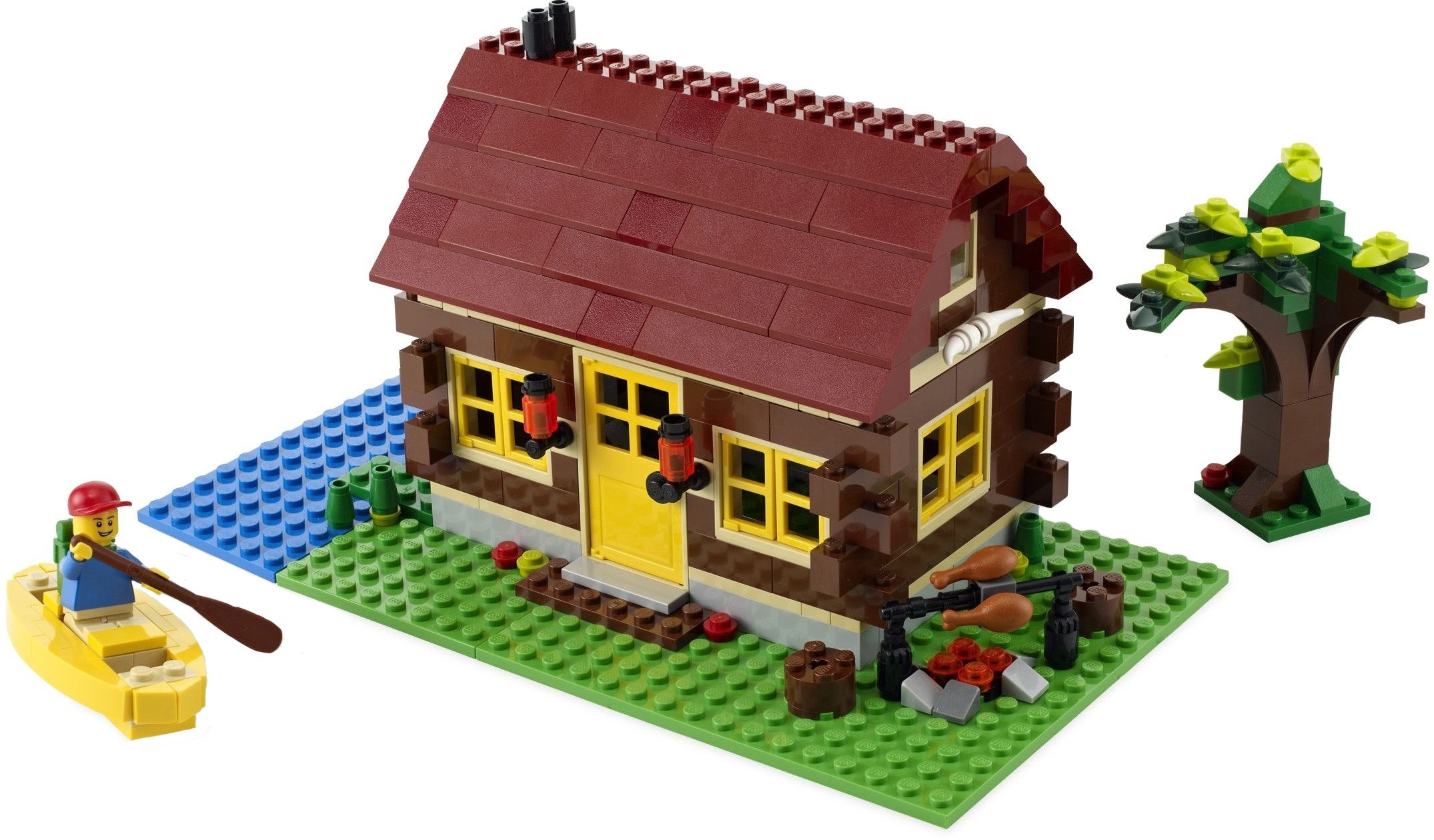В наборе Лего 5766 есть огромное количество различных аксессуаров (деревья, гриль, лодка с веслом, дрова и пр.), которые сделают игру еще более интересной и познавательной.