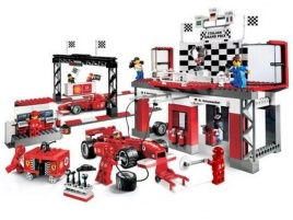 Также в наборе Вы найдёте 6 минифигурок с аксессуарами: водитель грузовика, гонщик и 4 механика команды Ferrari.